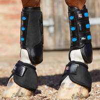 Made from a combination of 2520D ballistic nylon and microfibre leather. The strong yet supple microfibre leather covers the important parts of the boot, around the fetlock, straps and strike guard. They incorporate EVA lining, which is water resistant and helps prevent the boots retaining water and becoming heavy on the horse's leg. Excellent protective horse boots for the cross country phase.